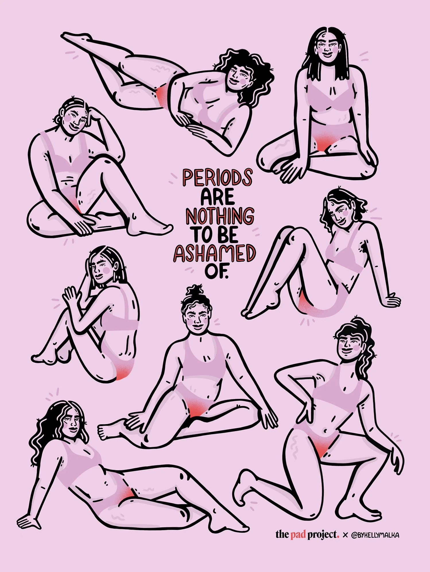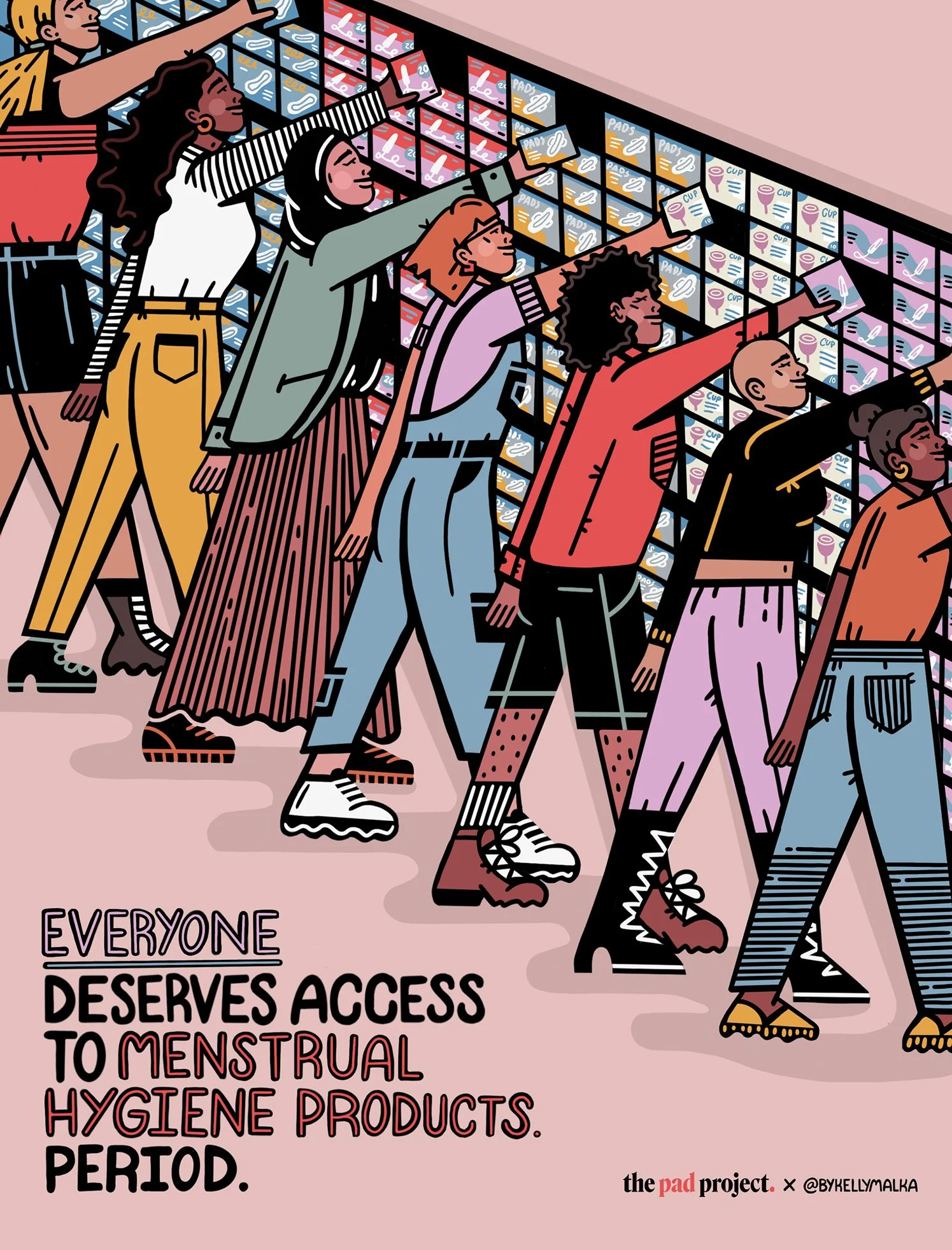 Illustrations for nonprofit, The Pad Project, supporting their mission to increase access to menstrual health education and resources through thoughtful, expressive visuals.